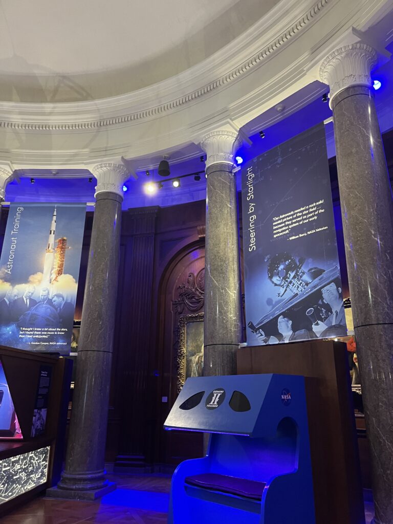 宇宙に関係のある展示では、アポロ計画の頃に宇宙開発の裏方で活躍した数学者や技術者の女性たちの紹介コーナーや、宇宙船から外をみた時のシュミレーションコーナー(2人掛けの席に座ると小さい窓から星がみえていますが、それを回転させて・・・いくつさっきと同じ星の配列をみつけられますか、というようなもの)もあり、面白かったです。長女はcelestial navigationの体験の、siriusやrigelなど15個くらいの星を、画面を動かして順番にみつけるゲームにはまって何度も楽しんでいました。